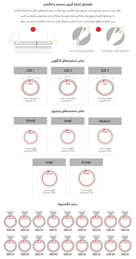 راهنمای اندازه گیری دستبند و انگشتر